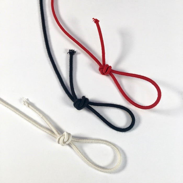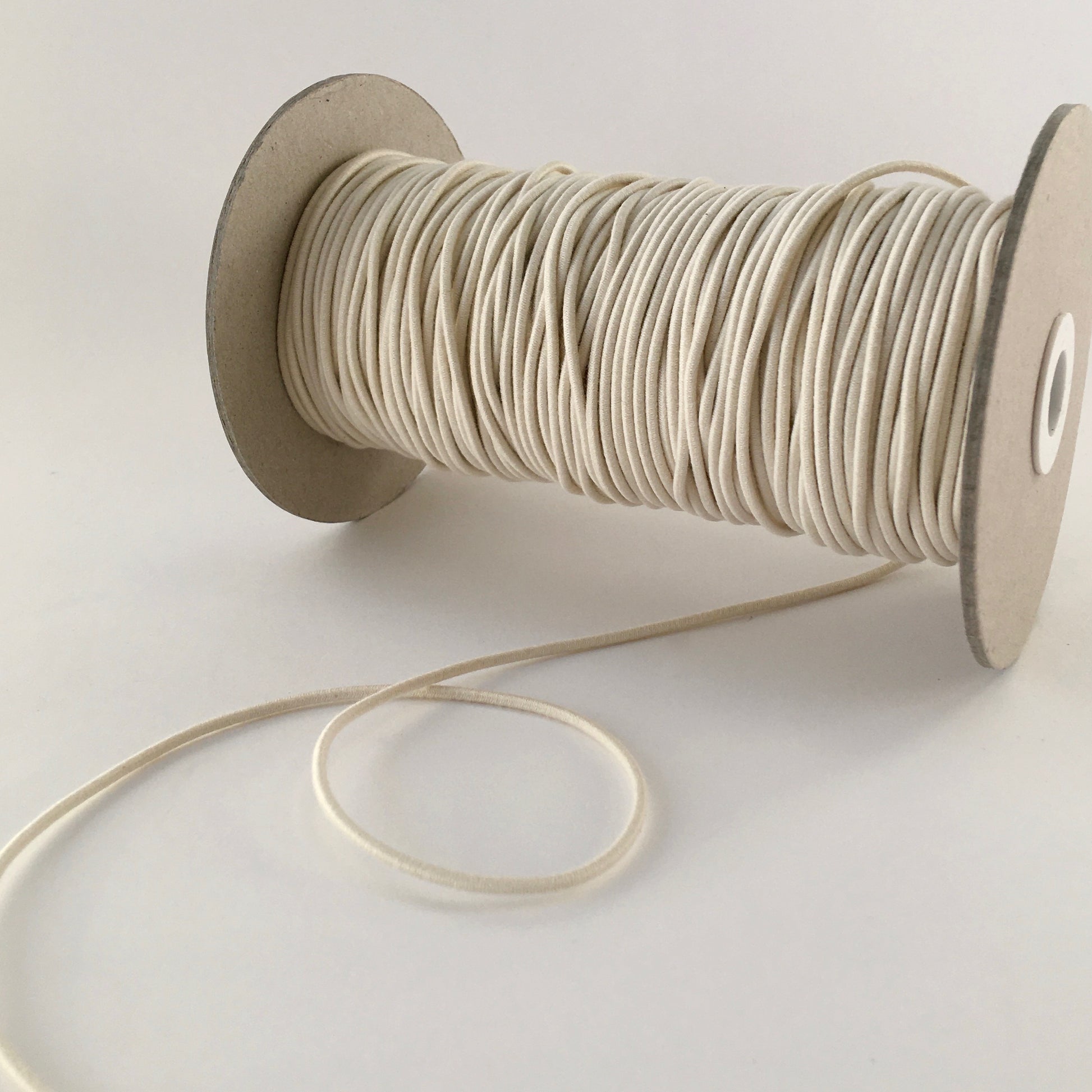 2.2mm round cord, plastic-free elastic made from organic cotton and natural rubber.
